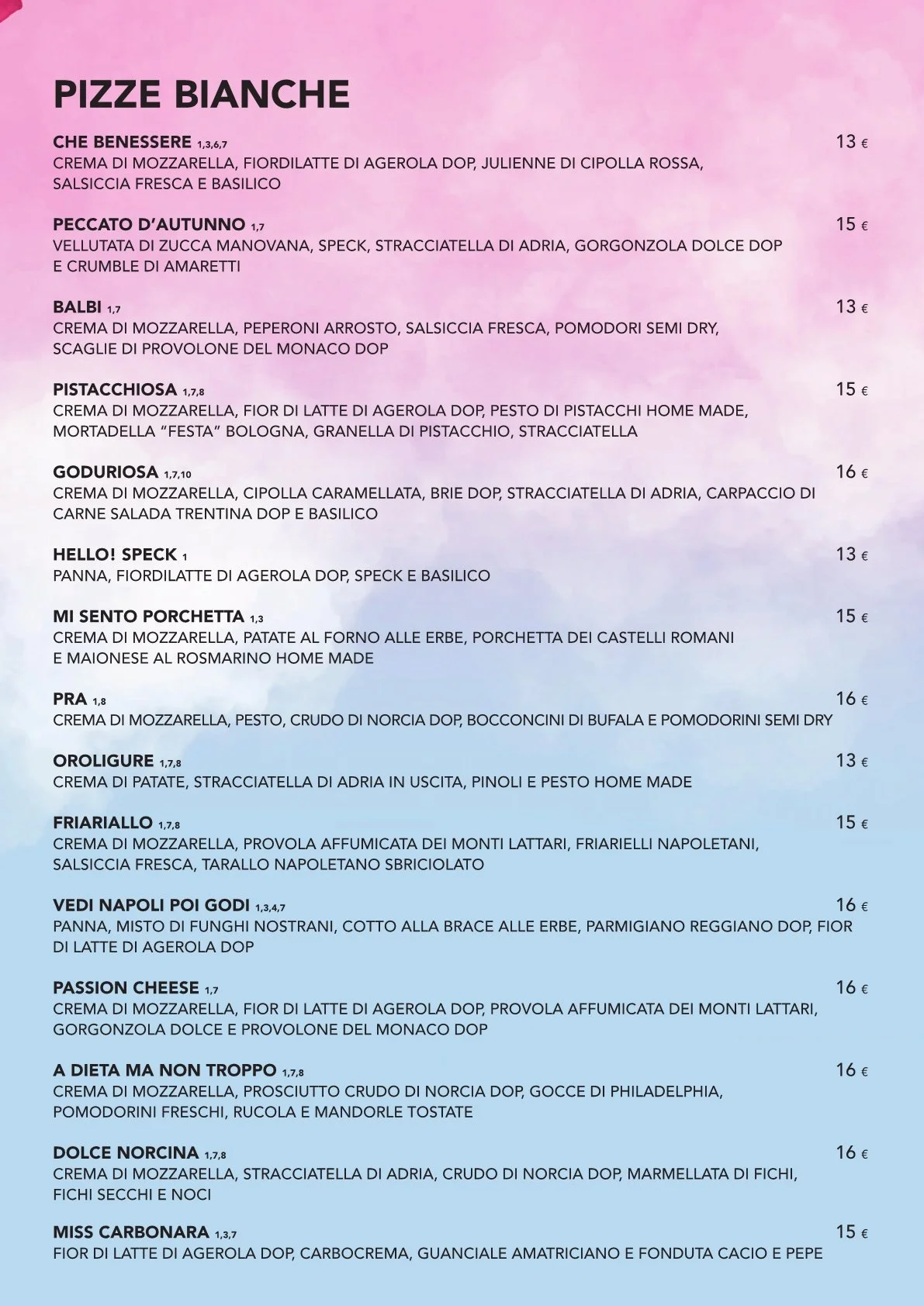 MENU' PALMA DI MAIORCA